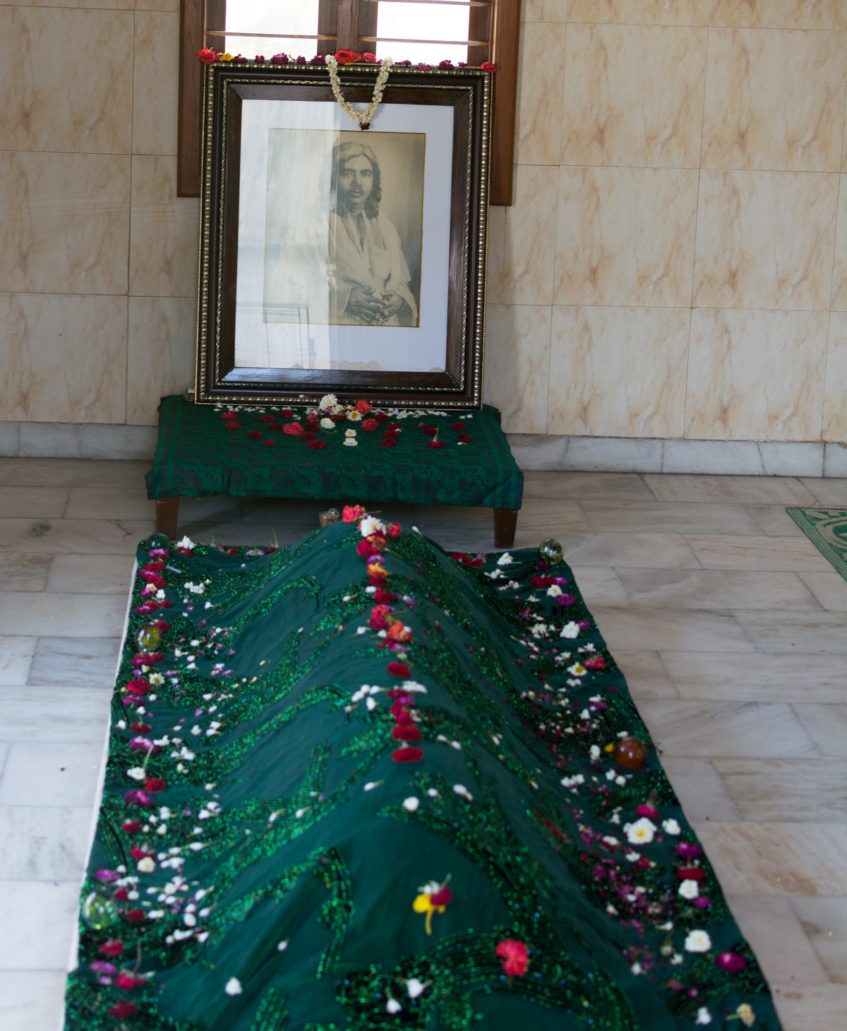 Example of a Jeeva Samadhi where visitors are encouraged to touch the Samadhi itself.